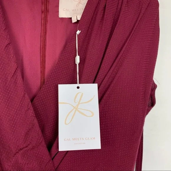 NWT Gal Meets Glam Luella Ruched Shoulder Crop Wide Leg Jumpsuit Oxblood Red