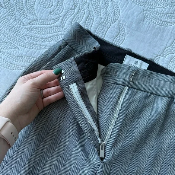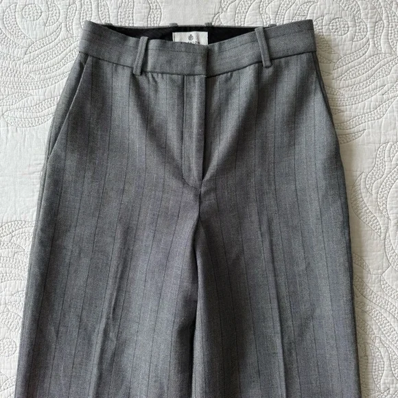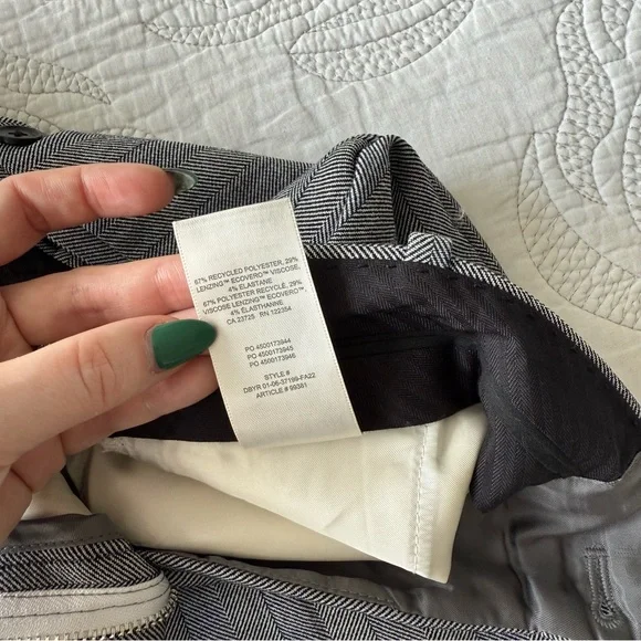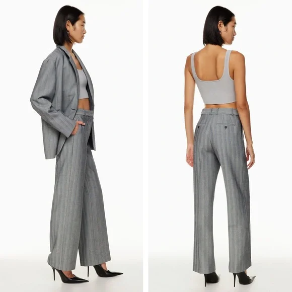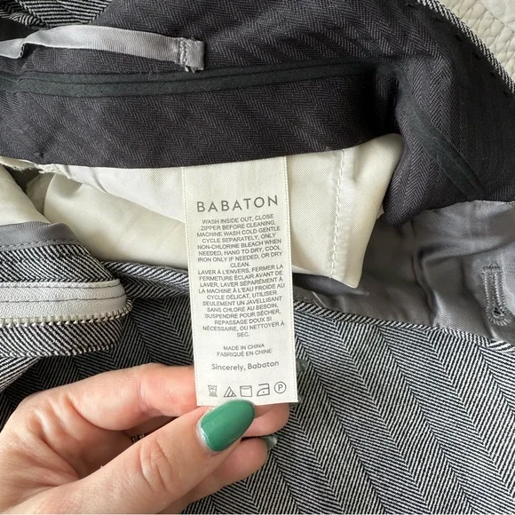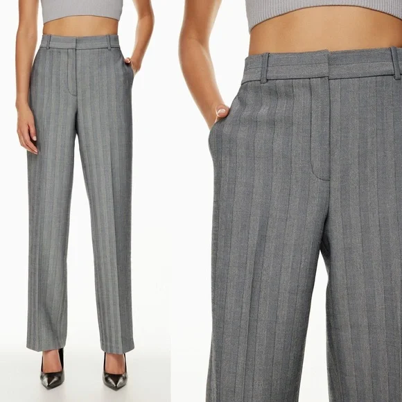 Get that custom-tailored look without the hassle. These are high-rise pants with slash hand pockets, a classic fit and darted back for shaping. They’re expertly tailored with (Re)ssential — softly structured stretch fabric that holds its form while you move easy. This fabric is sourced from a premier Portuguese mill and made with recycled polyester and LENZING™ ECOVERO™ Viscose.Back welt pocketsFront slash pocketsZip fly with hook-and-bar closureExclusive Babaton embroideryRecycled materials have a lower environmental impact than their virgin alternatives.Rise: HighLeg: StraightLength: Full — Intended to be a long pant and hit at the ground while wearing heeled shoesOrigin: Fabric from PortugalContent: 67% Recycled Polyester / 29% Lenzing Viscose / 4% ElastaneCare: Machine washImportedStyle: 99381