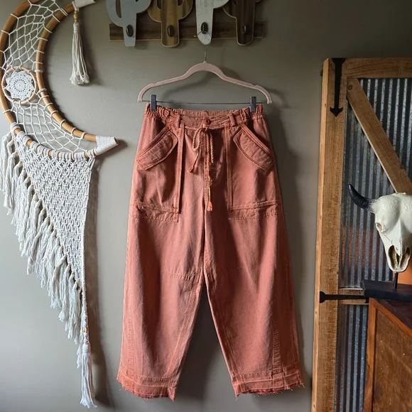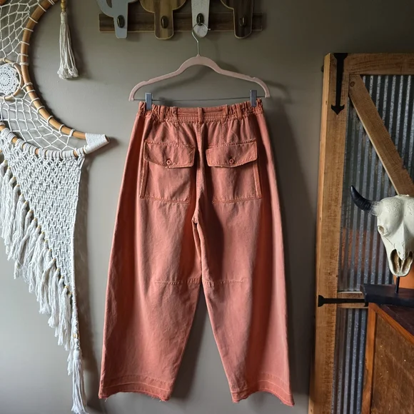 Like new condition!Free PeopleTo The Extreme Barrel PantsSize XSRetail Value $128Style #OB1703810"So cool in a cargo-inspired design, these wear-with-everything pants are the perfect mix of cozy and chic."Fit: Mid-rise, wide-leg barrel silhouetteFeatures: Zip fly and button closure, drawstring waistband, oversized cargo pockets, undone ankle-length hemWhy We <3 It: Just as effortless as they are essential, pair these with your favorite tee or cozy sweater for endless ways to wear.Color Note: The true tone of this style is more warm-toned, khaki green colorway.Inseam: 25.5"Rise: 12.75"Waist: 13.75" flat acrossHip: 23.25´ flat acrossLeg Opening: 10.25" flat across88% Cotton, 12% Linen