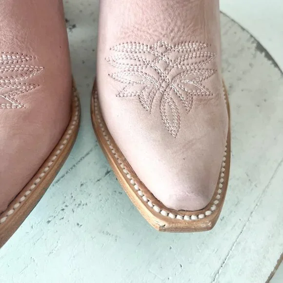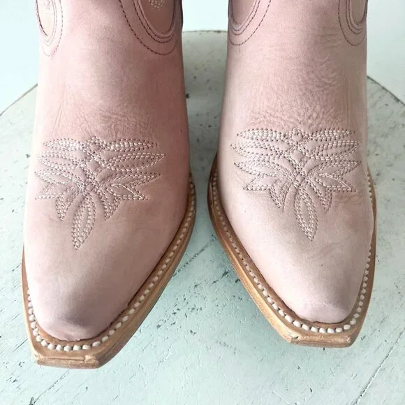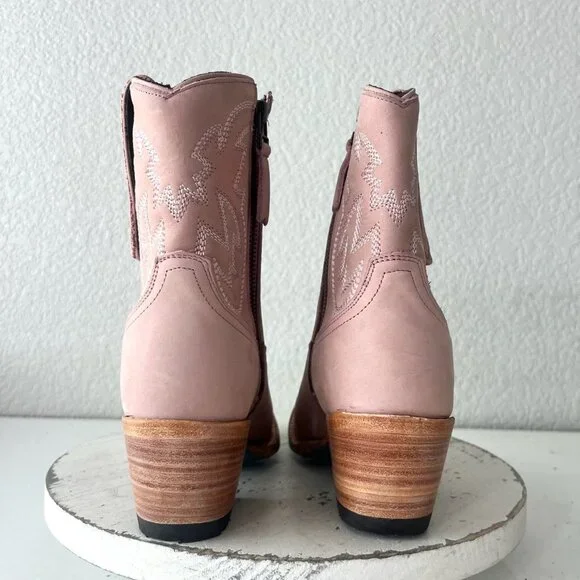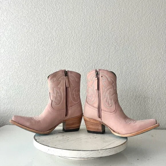 Lane Boots SMOKESHOW Womens Cowboy Bootie in Blush Pink Leather with a Western Snip Toe and a Short Zipper Ankle Closure.Condition: These are new boots. The leather is...
