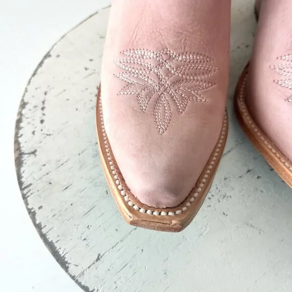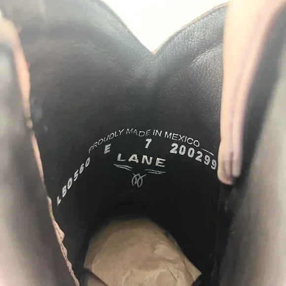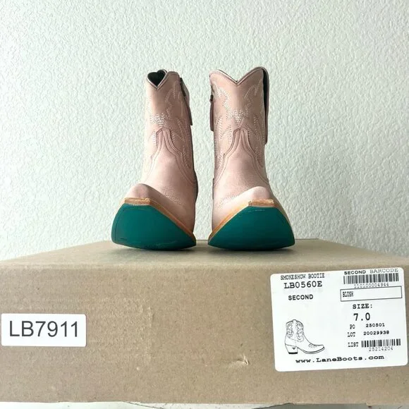 Lane Boots SMOKESHOW Womens Cowboy Bootie in Blush Pink Leather with a Western Snip Toe and a Short Zipper Ankle Closure.Condition: These are new boots. The leather is intentionally distressed. The toes have faint spots. They fit true to size and will come in a boot box. **The Pictures are of the actual boots you will receive. These are genuine leather.Ankle High Short Boots Style: Smokeshow Color: Blush Pink Size: 7 MSRP: $295Shaft: 8" tall Heel: 2"Toe Shape: Snip Toe Ankle Circumference: 12.5"Sole Width: 3 3/4"Sole Length: 10 5/8"Shipping: I package your items with great care and ship fast from Texas. If you are an international customer and do not need the boot box, please message me before you purchase. I will see if I can save on the shipping cost.I really appreciate your business and hope you love your purchase!