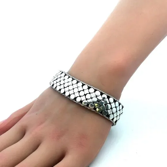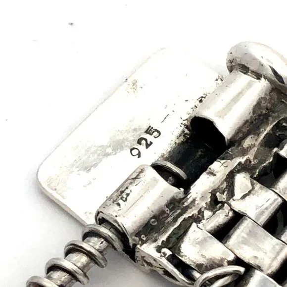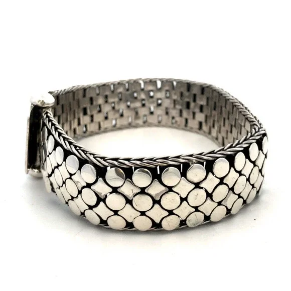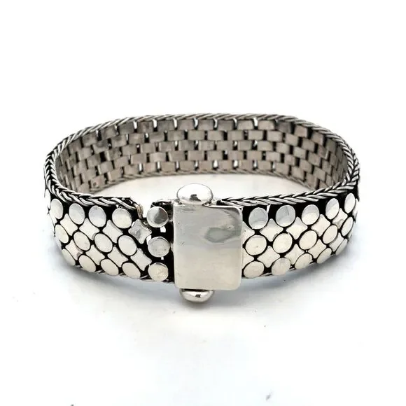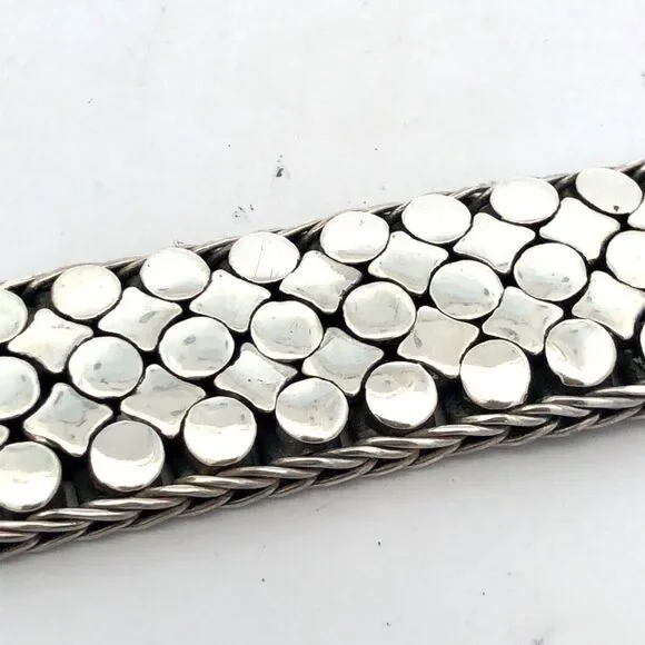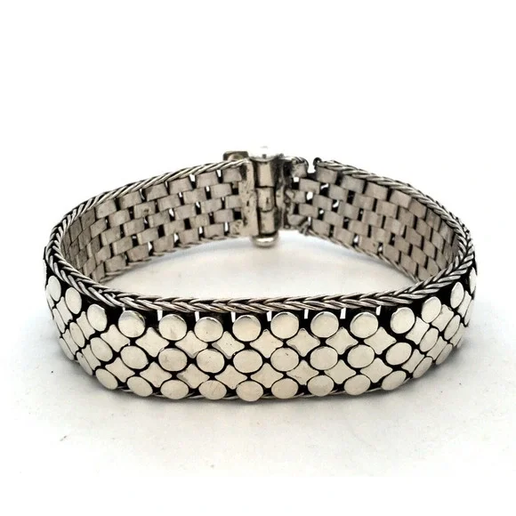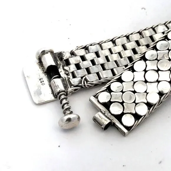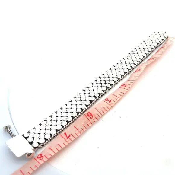 * Estate 925 Sterling Silver Dot Textured Wide Chain Statement Bracelet* Length: 8" * Width: 3/4"* Weight: 73.9 g* Closure: Screw* Marked: 925 * Condition: As pictured. * S6924