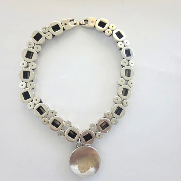 Unique rare Heet choker.Swarovski pendant with bubble look choker.The metal is a 100% Nickel-free, Lead-Free and Cadmium-free solid die-cast Aluminum Zinc blend.I love this necklace - so unique!I think that I would prefer to have the pendant put on another necklace, I believe it would make this necklace all that more stunning!!