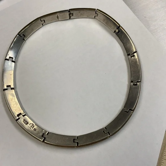 Mid century modern tri color sterling silver mexican choker collar design 58