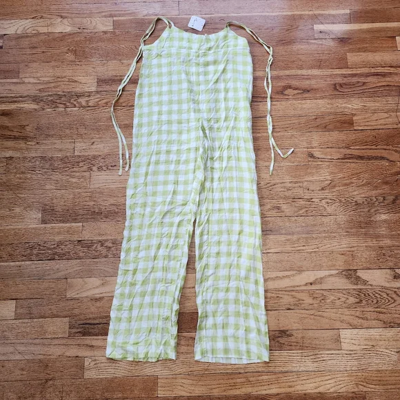 New with Tags ($128)Free PeopleMissed Holiday One-PieceStyle No. 62032198; Color Code:Timeless in gingham, this sweet one-piece features a relaxed, straight-leg silhouette with sweetheart neckline and tie-shoulder straps for a wear-everywhere look.Adjustable strapsDropped armholesLow back designCare/ImportMachine Wash ColdImportMeasurements for size smallWaist: 32.5 inRise: 13 inInseam: 29 inHips: 40.5 in*Bin X
