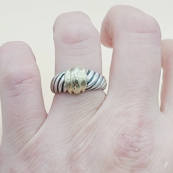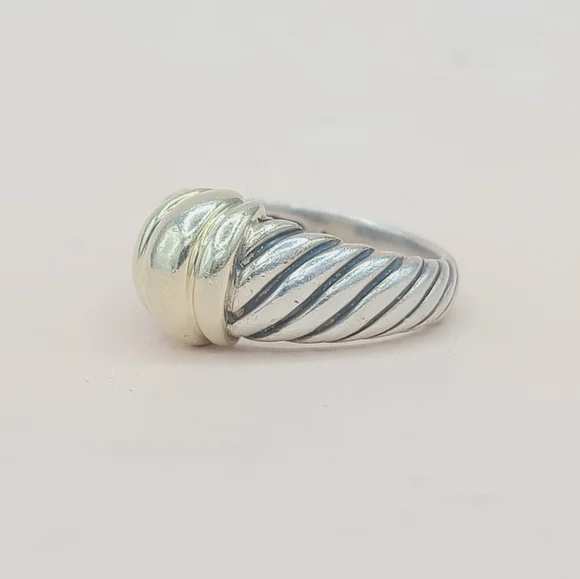 David Yurman Metro Dome Ring With GoldExcellent pre-owned condition Sterling silver 14k GoldRing , 10.5mm at domeSize 7Retired Piece! Matching earrings also available Comes with...