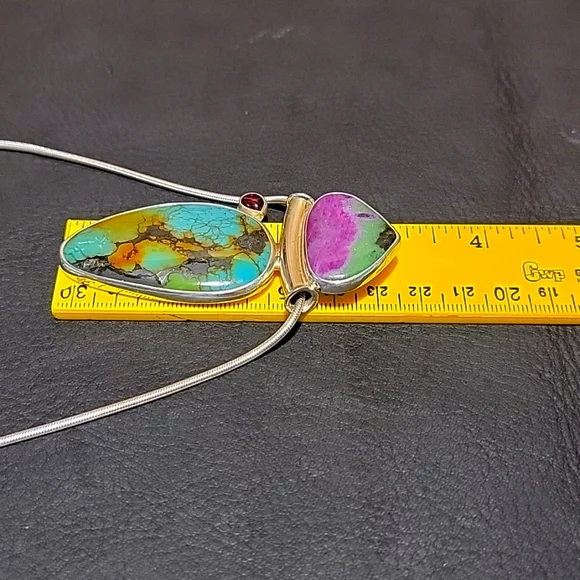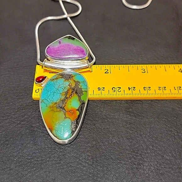 Turquoise & Garnet 925 Sterling Silver Necklace by Obsidian