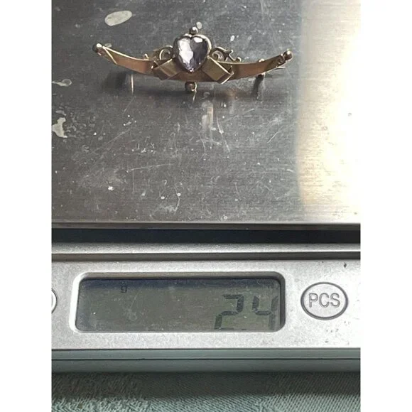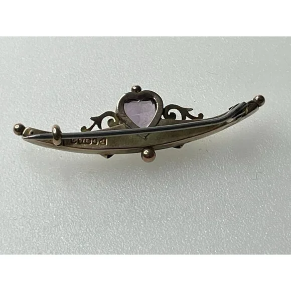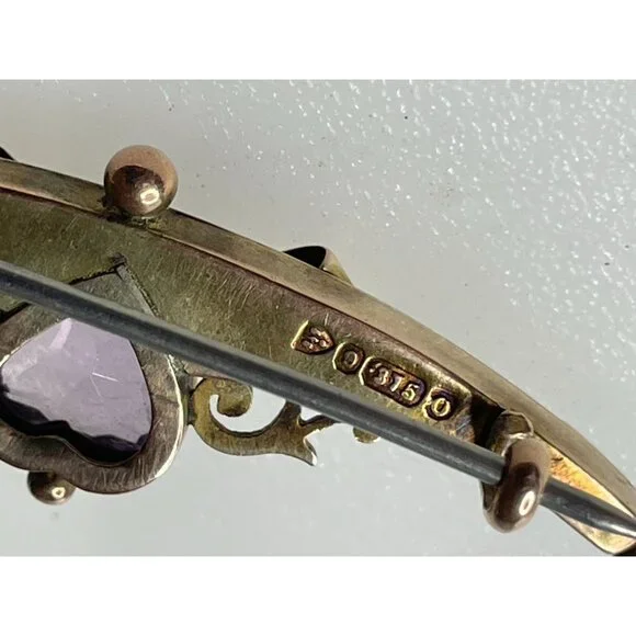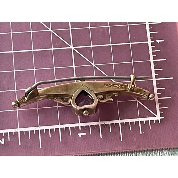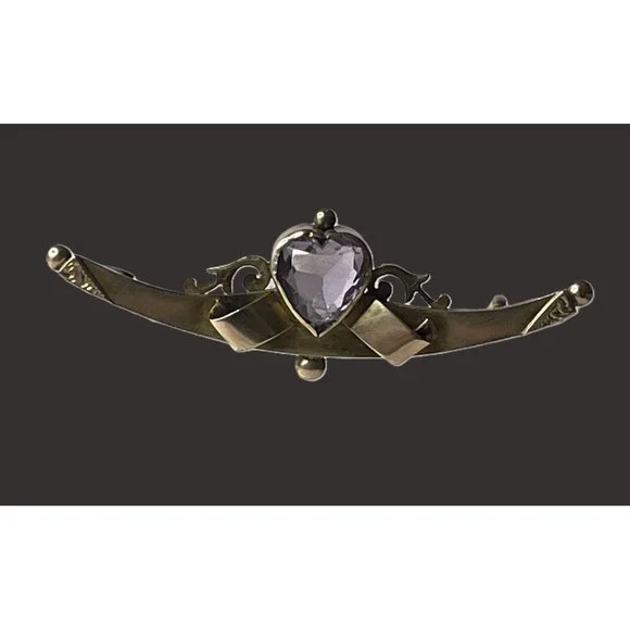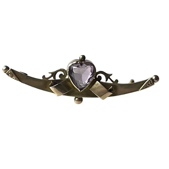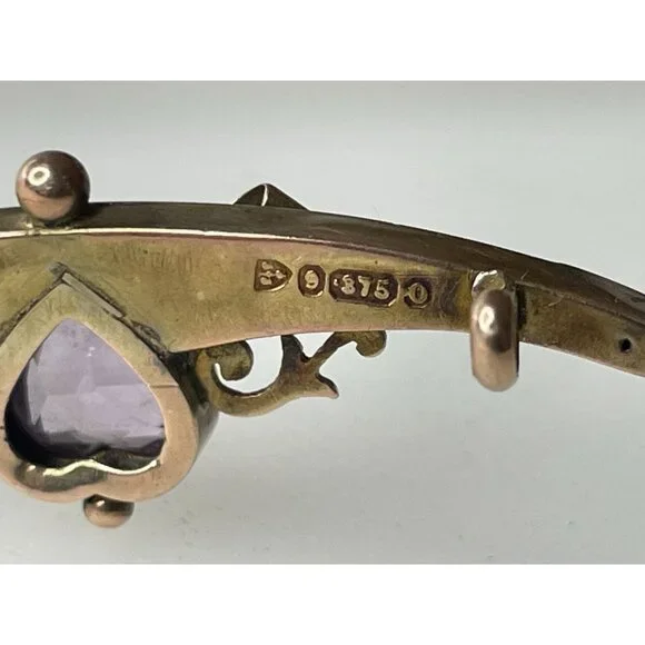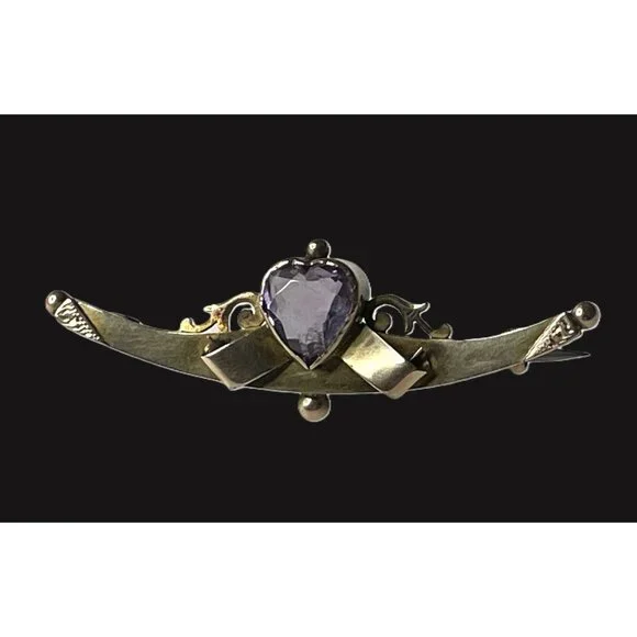 Antique 1897 Chester 9K Gold Brooch With Heart-Shaped Amethyst Gemstone