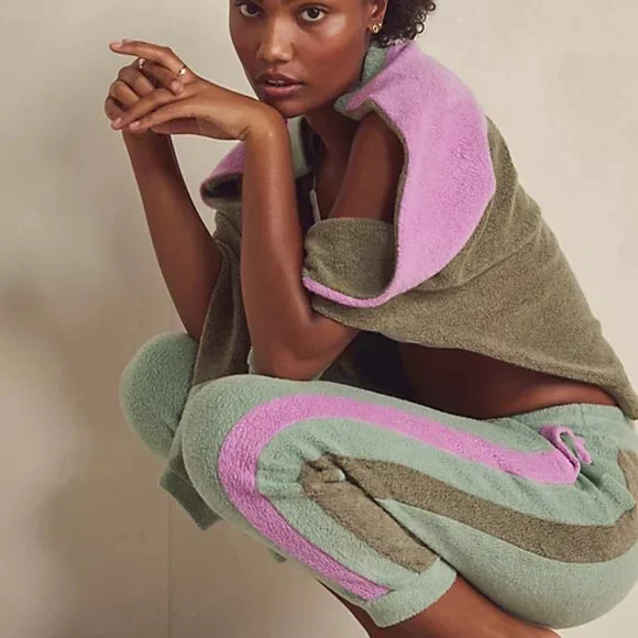 new Free People Blue Monday fleece lounge pants sweatpants in green 192J
