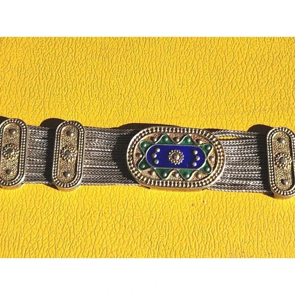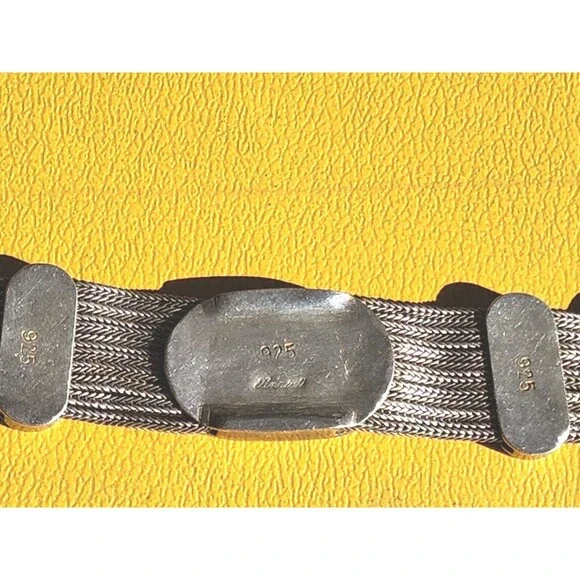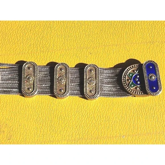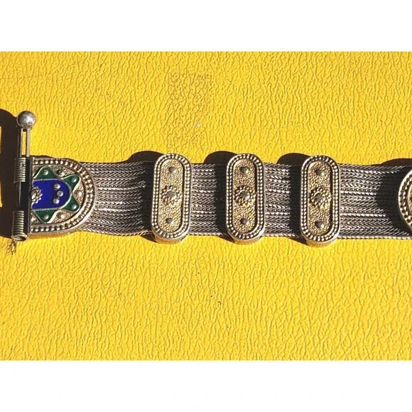 This vintage bracelet from Anatoli is a stunning piece of jewelry that will surely captivate anyone´s attention. Featuring a beautiful multicolor enamel design on a sterling silver foxtail chain, this bracelet has an item length of 7 inches and a barrel closure. It is perfect for any occasion, whether it´s Mother´s Day, engagement, wedding, graduation, Christmas, anniversary, birthday, confirmation/communion, or Valentine´s Day.The bracelet is signed by Anatoli and is made from 925 sterling silver with a metal purity of 925. It is an original piece from Turkey that is antique and vintage in style but undated in era. This fine piece of jewelry is unisex and comes with a chain type of foxtail. Don´t miss out on the chance to own this beautiful bracelet that exudes beauty and elegance.