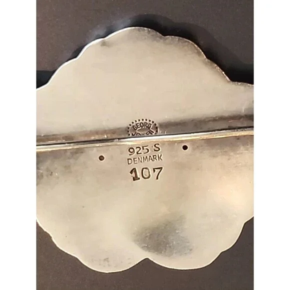 This vintage pin brooch from ´s Denmark collection is a beautiful piece of fine jewelry. The intricate floral design is handcrafted in sterling silver, making it a durable and timeless addition to any collection. The brooch is signed by the designer and is an original piece, not a reproduction.The shape of the brooch is a elegant flower, perfect for any occasion. The metal is 925 sterling silver, with no stones or gems. The era and country of origin are Denmark, adding to its unique and authentic charm. This piece is perfect for antique and vintage jewelry collectors, as well as those who appreciate handmade and original designs.