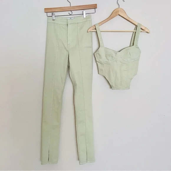 Zara Green Split Skinny Jeans And Strappy Top Set. Split high waisted skinny pants. Corset style top.Top SZ XSPants SZ 2New with tags