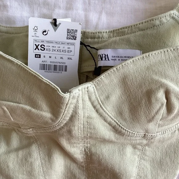 Zara Green Front Split High Waist Skinny Jeans Corset Top Set NWT SZ XS