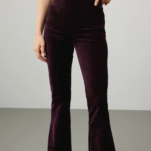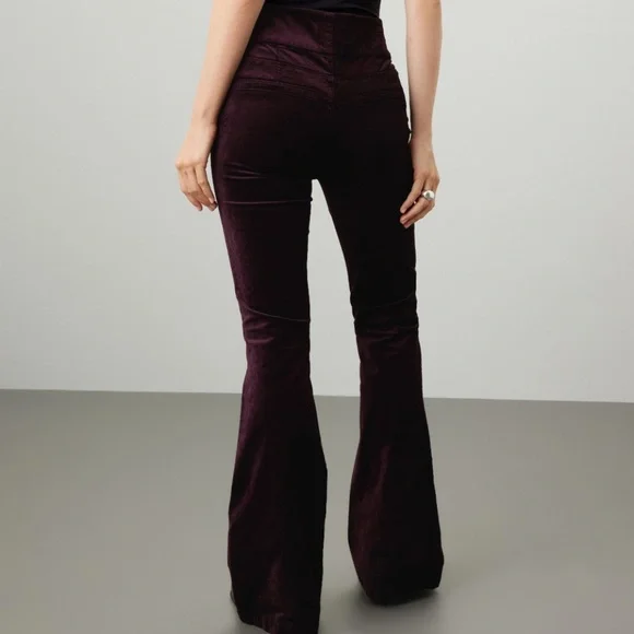 PAIGE Lou Lou Black Cherry Velvet Pants, 6