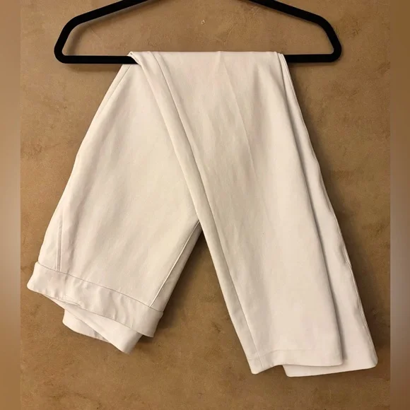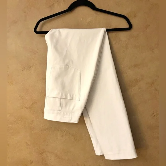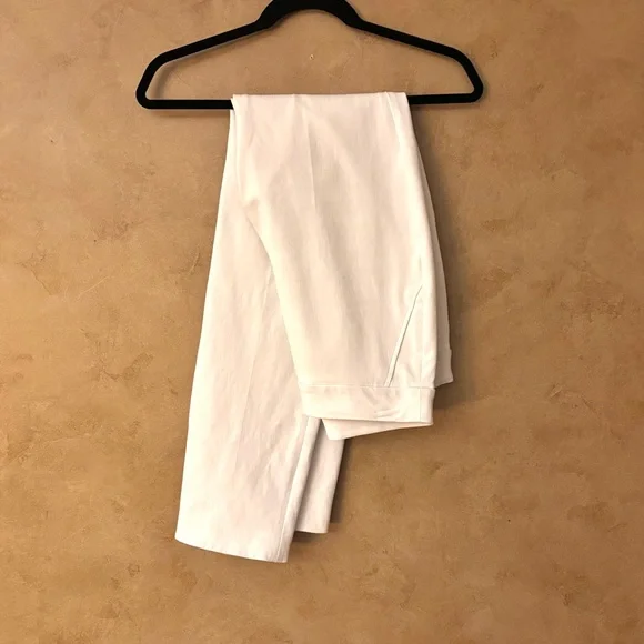 This On-the-Go pant features groundbreaking, Ultimate Opacity Technology that provides 100% opaqueness. These are the most comfortable and flattering white pant you can imagine.Features:- White - Pull on style- Body: 53% Cotton, 41% Rayon, 6% Elastane; Lining: 100% Polyester- Functional back pockets- Machine Wash Cold, Gentle Cycle- 4-Way Stretch Offers flexibility and comfort- Size M- Worn once! Excellent condition!