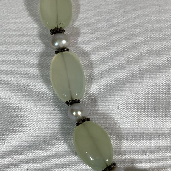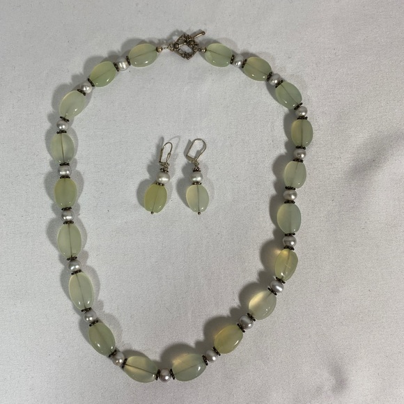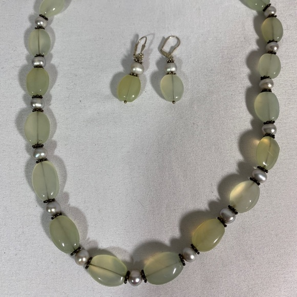 Necklace & Earring Set- Serpentine, Freshwater Pearls, and Sterling Silver Handmade Stamped earrings and necklace Lever back earring clasps Necklace clasp is able to be worn in...
