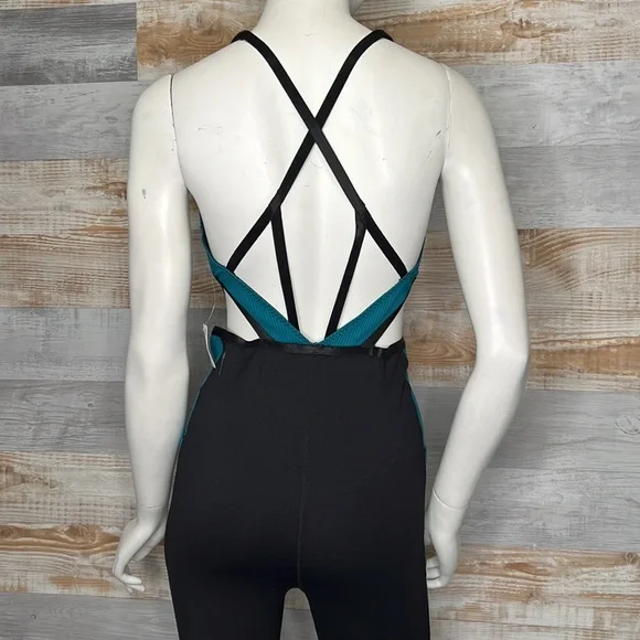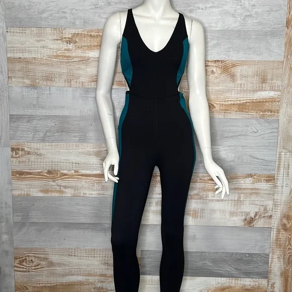 Free People Movement Ticket To Paradise Onesie black and green size SmallBrand New with tags. Never worn. Excellent condition, no flawsGet ready to win in this so cool, sporty one-piece workout jumpsuit featured in a fitted, moves-with-you stretch style with contrasting ribbed detailing, a V-neckline and a strappy back, accented by bold and functional side cutouts.48" length, 24" inseam Plunge V-neckSleevelessPull-onStrappy racerbackColorblock designCutout details7/8 cropped legCompression fabricShell: 68% nylon, 32% elastane; Trim fabric: 90% polyester, 10% elastaneLining A: 94% polyester, 6% elastane; Lining B: 81% nylon, 19% elastaneMachine wash cold, tumble dry lowBin 5