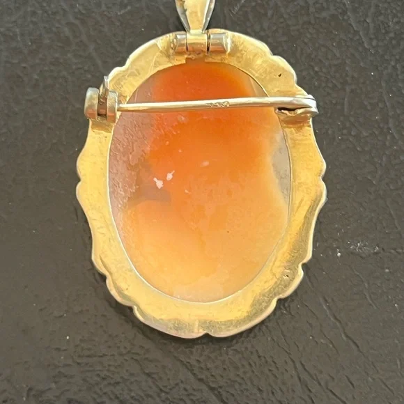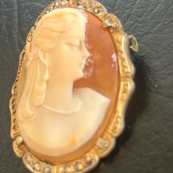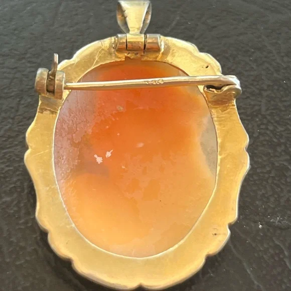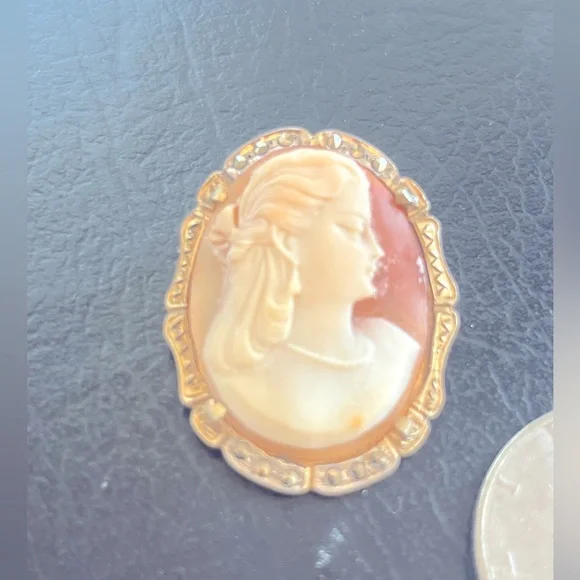 Vintage Victoria shell carved 10 kt gold cameo brooch/ pendant