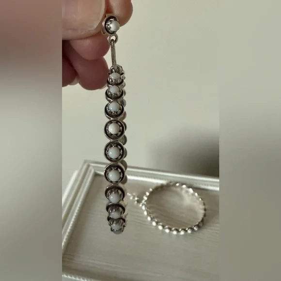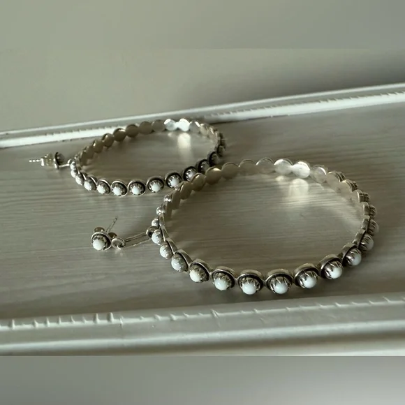 Our OG Betsy earring style but EVEN BETTER! These earrings are better quality, have more stones and overall have a more finished look.Sterling silverHowlite stonesCircle shape Medium weightPost styleDangles about 3.5 inchesBrand new, never worn.