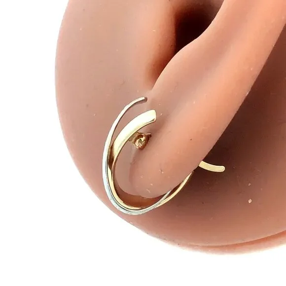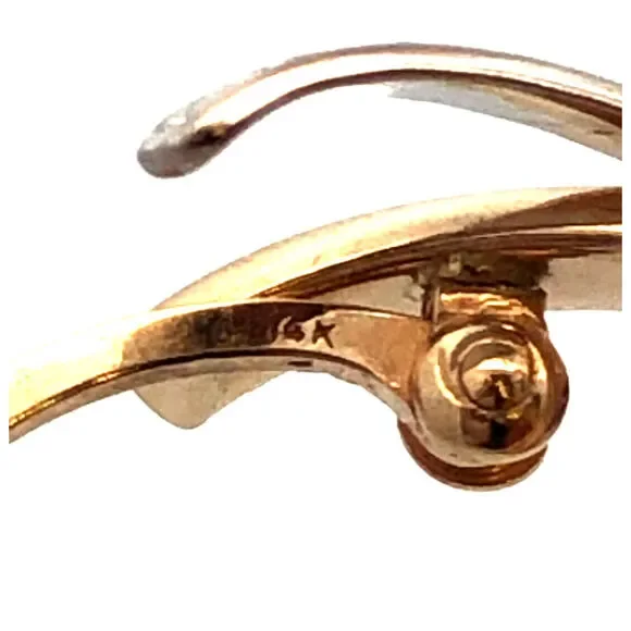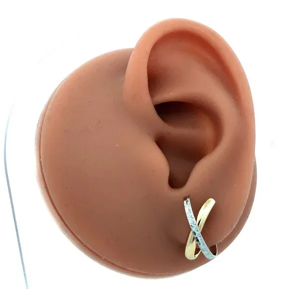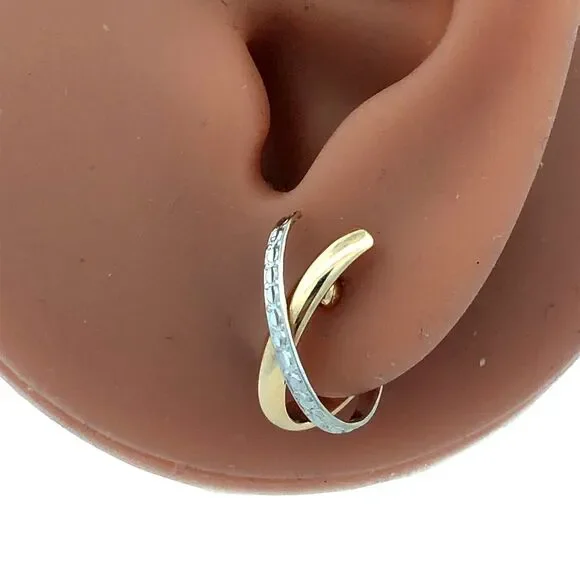 Designer 14K Yellow White Gold Textured X Criss Cross Two Tone Hoop Earrings