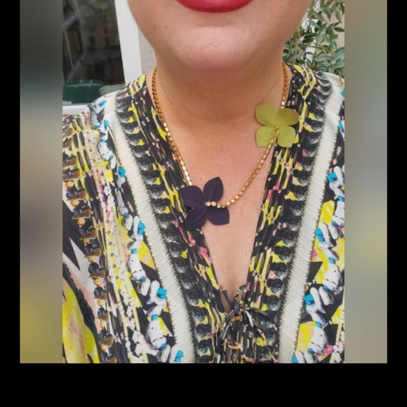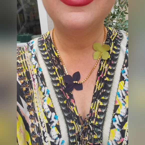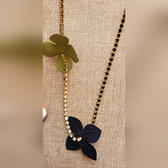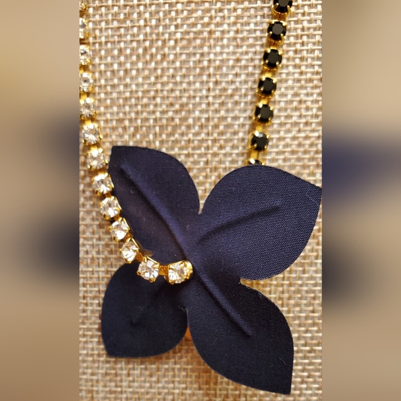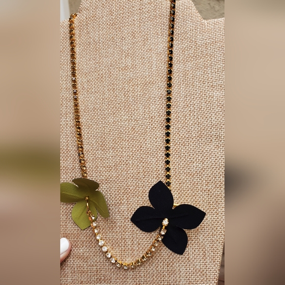 MARNI Leather Flower and Crystal Necklace
