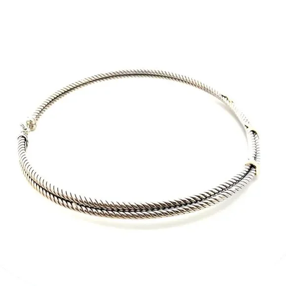 Designer 925 Sterling Silver 14K Gold Twist X Two Tone Collar Necklace