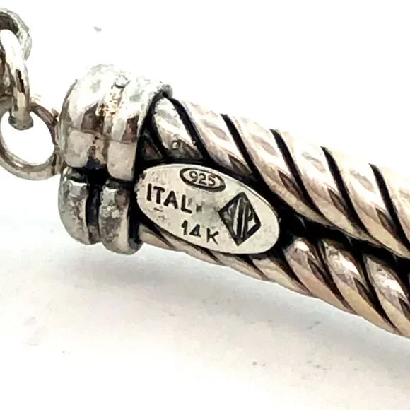 * Designer 925 Sterling Silver 14K Gold Twist X Two Tone Collar Necklace* Length: 17"* Width: 5/16"* Weight: 4.1 tgw* Closure: Lobster * Marked: YIP * Italy * 925 * 14K * Condition: As pictured. * S6118