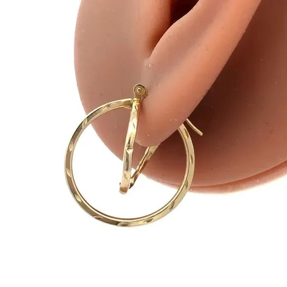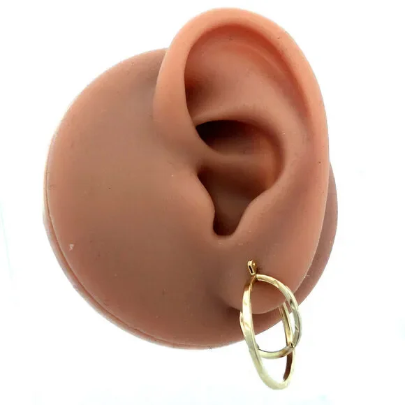 14K Yellow Gold Designer ATT Textured Round Double Hoop Earrings