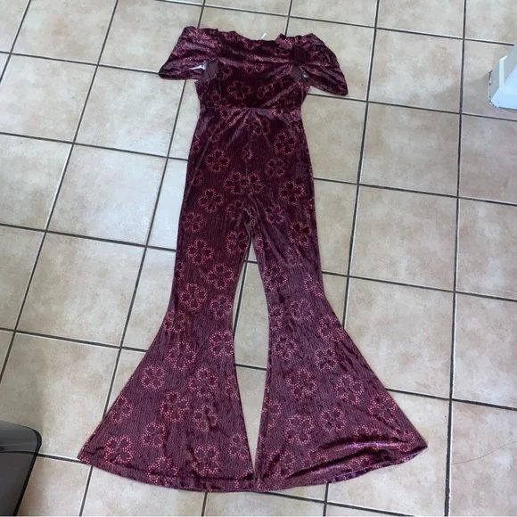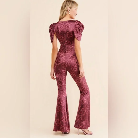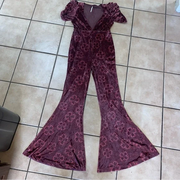 Free People Rosaline Jumpsuit velvet floral print Long Tall Bellbottom Flare