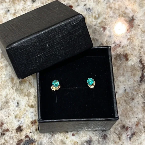 Solid 14K Gold and Genuine Emerald Stud Earrings are stunning! Bright green, amazing clarity and round brilliant cut stones. 14K yellow gold settings, posts with butterfly backs. Just beautiful simple elegance where the stones make all the statement. These are small stud earrings and would be the perfect starter earrings for a little girl or young lady just starting to establish her jewelry collection. These would also be perfect to wear in a second ear piercing or alternate ear piercing as well. Emerald is the birthstone for May and is a coveted stone. **Display bust is 12” in height. Therefore, jewelry may appear larger in size.If seriously interested in the earrings, I can add a photo next to a dime for size approximation. I thought I had a photo of that but seems to be missing. PLEASE ASK ALL QUESTIONS BEFORE PURCHASE.Ships same day or next in a lovely gift box.