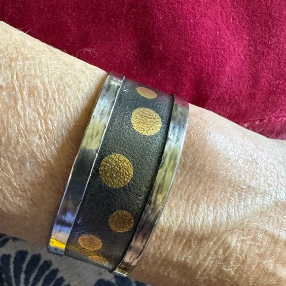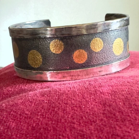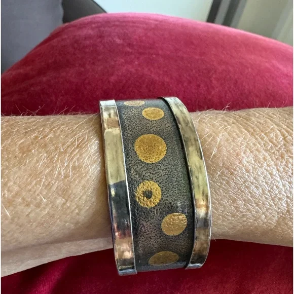 With Nice patina and 22k decorative circle designDesigner KKFits size 7” wristAdjustable