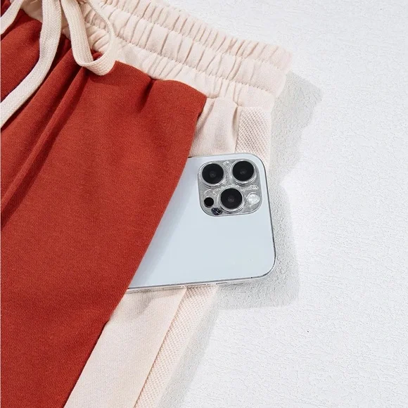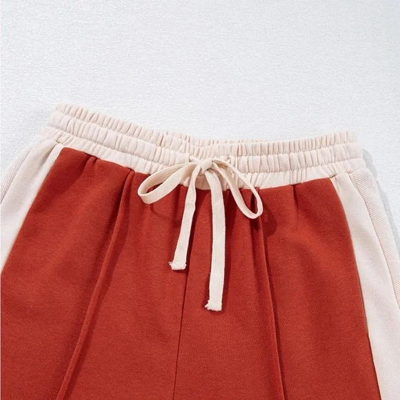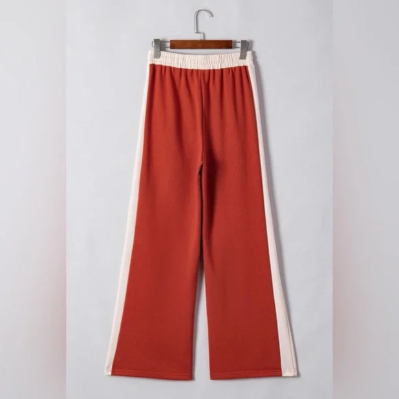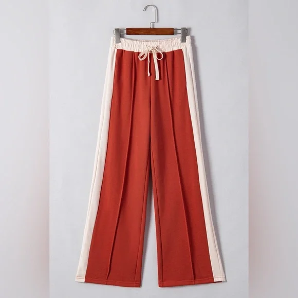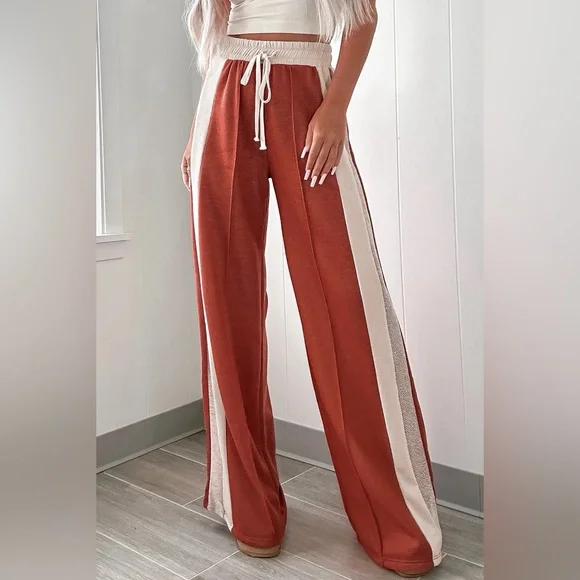 Orange red Drawstring Contrast Wide Leg Pants