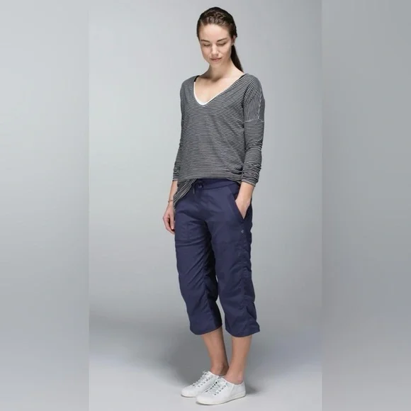 Lululemon Studio Crop *NoLinerCadet BlueSize 10.NWT.• woven for strength and no-bulk performance - Swift fabric moves with us and stays out of our way• sweat-wicking Swift fabric is two-way stretch and breathable• tighten the drawcord in the waistband for a secure fit• go ahead, jump around! the hidden key pocket is designed to keep small stuff secure• importedFit + function• designed for: yoga, gym, to-and-from• fabric(s):Swift• fit: loose• rise: medium• inseam: 19 3/4"• leg opening: 19 1/2"• hemmable: yesAll sales final