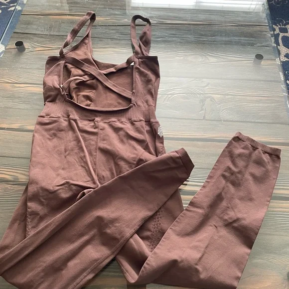 Sleek and stylish taupe jumpsuit. Ideal for versatile wear.The cutest onsie and such a pretty brown Small Make me an offer