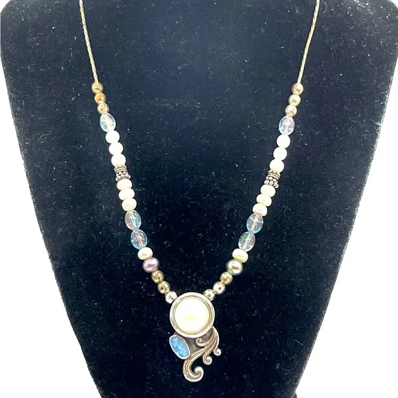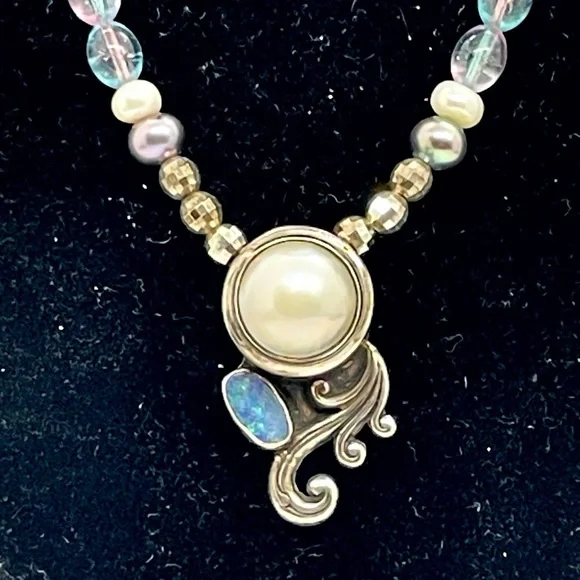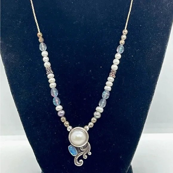 Sterling Opal and Pearl Sterling Necklace