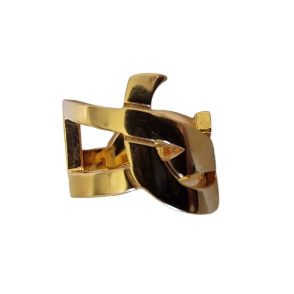 Saint Laurent Gold Plated Monogram Ring - Size 5