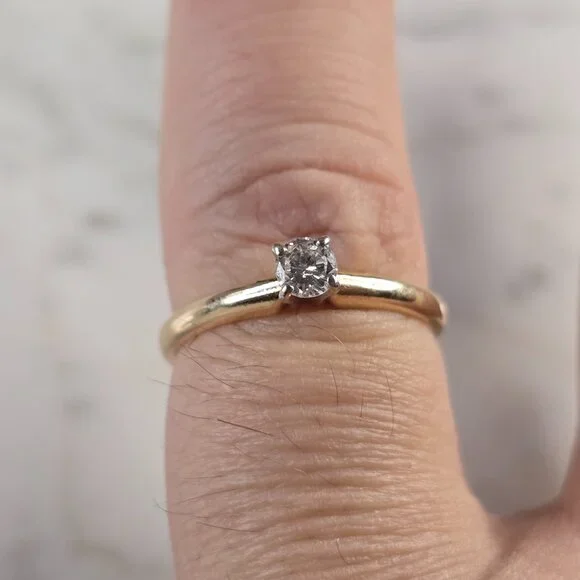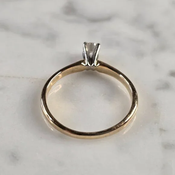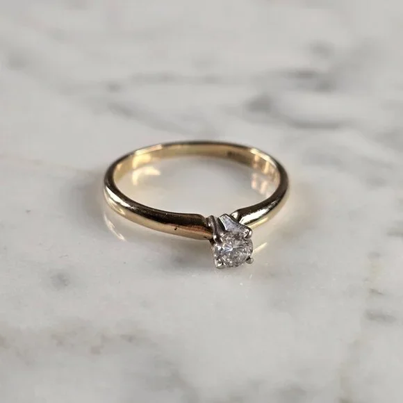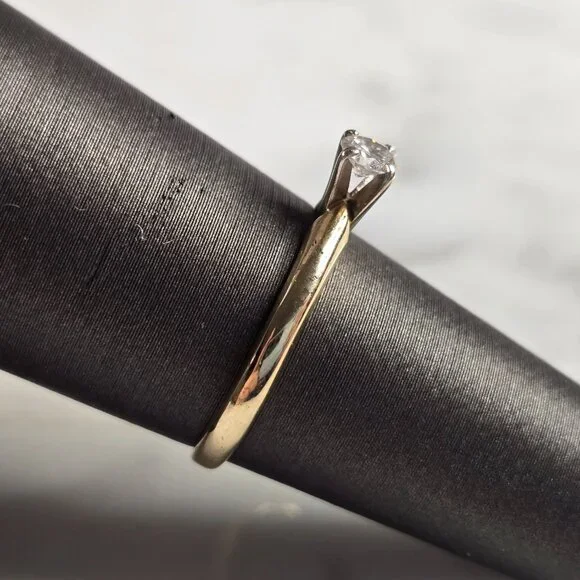A WOMEN´S VINTAGE ESTATE 14K GOLD DIAMOND ENGAGEMENT RING MADE BY MAGIC GLO.THE RING WEIGHS 1.8g.THE SIZE OF THE RING IS AN 6.0.THE DIAMOND IS ABOUT.15cts.THE WIDTH OF THE...