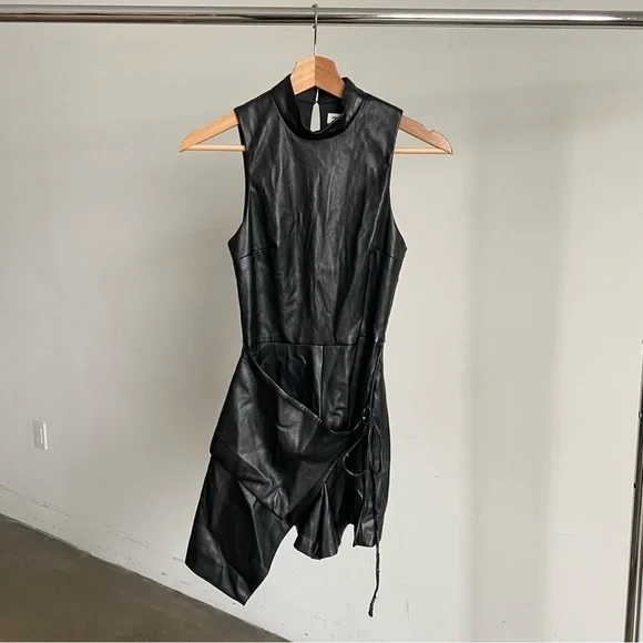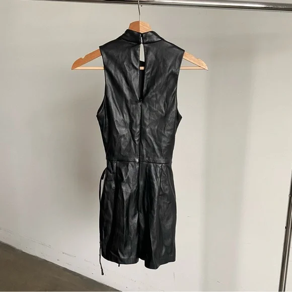 New Black Amanda Uprichard “Reed” Faux Leather Romper Jumpsuit Sz X-Small