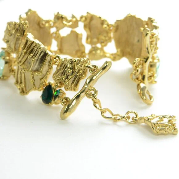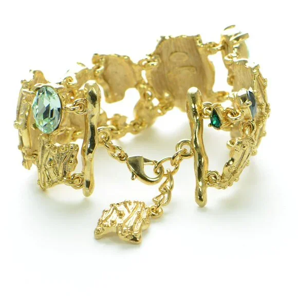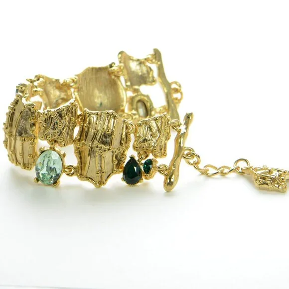 100% Authentic Oscar De La Renta Gold-toneCrystal Sculptural Bracelet