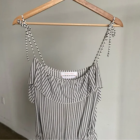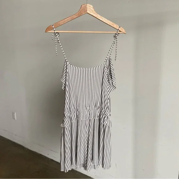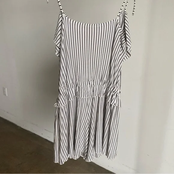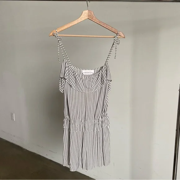 NWOT See By Chloe Black and White Striped Romper with Ruffles Sz 38 Medium