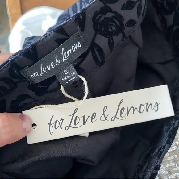 NWT For Love and Lemons Midnight Velvet Capri Pants These stunning Capri pants by For Love And Lemons showcases a sleek black design with velvet embellishments for a dazzling evening look. Lined. Side zip closure. Love the high rise style! Size: SmallNew with tags **by purchasing this item, you attest that you have read and reviewed the listing and its corresponding pictures in their entirety.