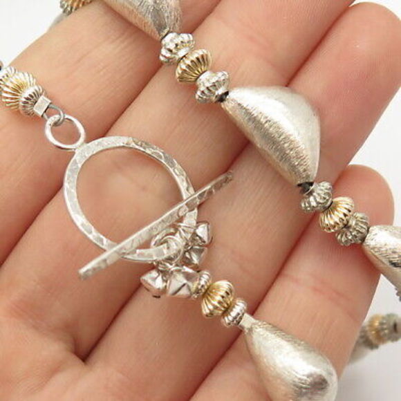 925 Sterling Silver 2-Tone Satin Finish Bead Chain Necklace 16"