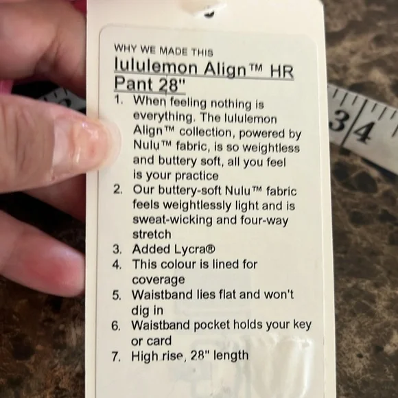 Lululemon leggings 28” inseam pink color size 10 waist 15” NWT