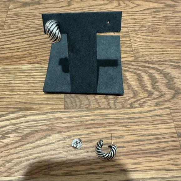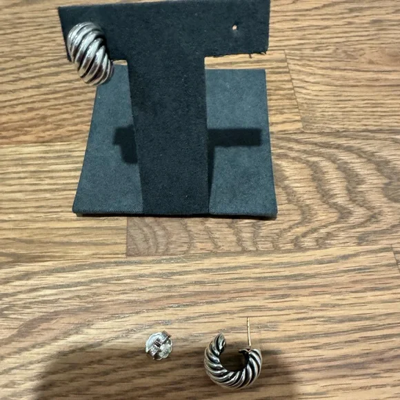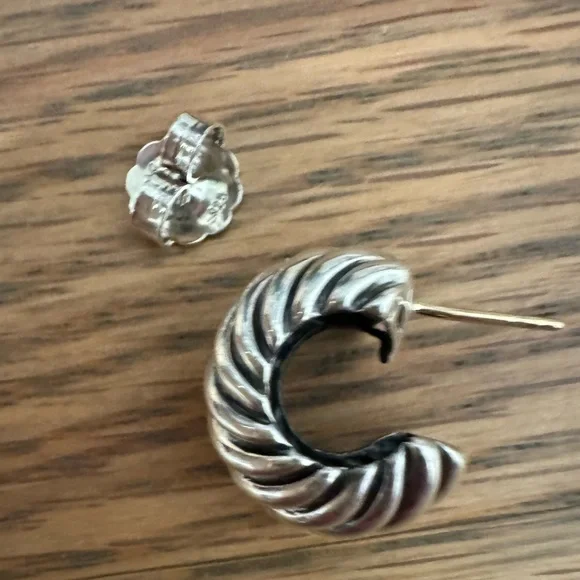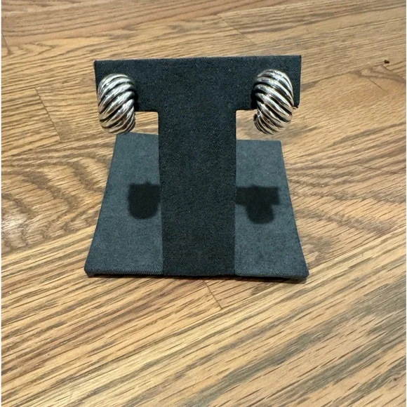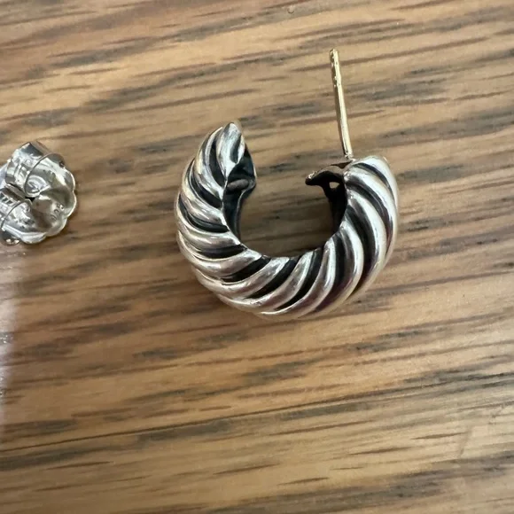David Yurman Sterling Silver Sculpted Cable Huggie Hoop Earrings #S1701-7