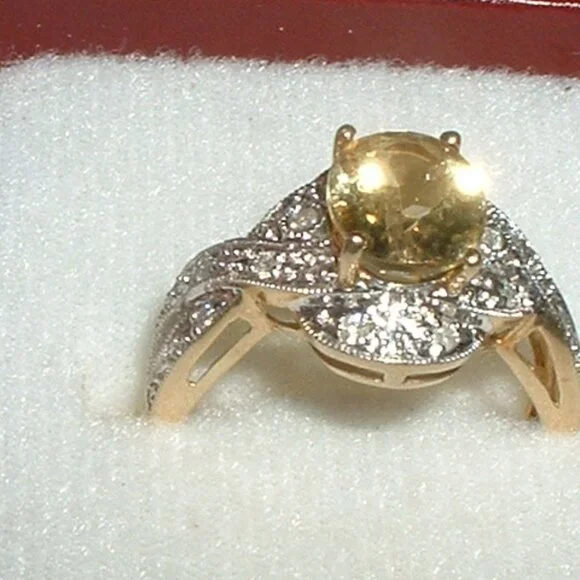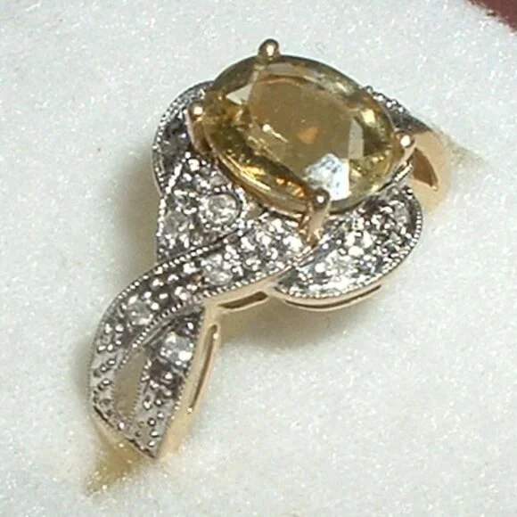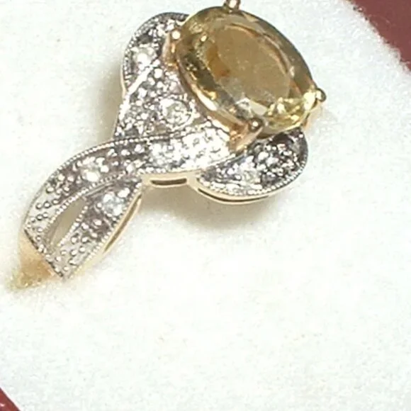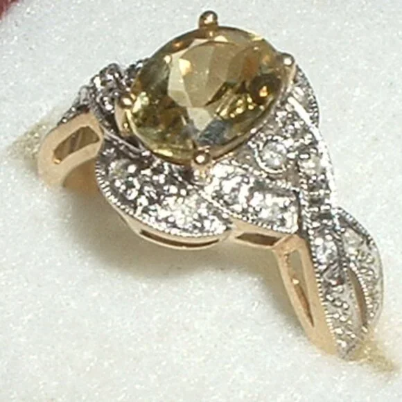 Stunning 10k Lime Citrine Diamond Ring ~ New