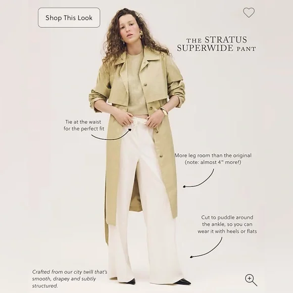 New without hang tags, comes in manufacturer packagingLabel marked through to prevent in store returnsFits SLIGHTLY BIG based on 86 customer reviews• High rise.• Wide through the hip, thigh and leg, with a slightly shorter length that still falls below the ankle.• For heights 5´4" and below, try our petite inseam; for 5´9"-6´, choose tall.• If you bought our original Stratus pant, we´ve updated the sizing for the most precise relaxed fit; the updated scale is 00-24, please note the conversions: 00 = XXS, 0-2 = XS, 4-6= S, 8-10 = M, 12-14 = L, 16 = XL, 18 = XXL, 20 = 2X, 22-24 = 3x.• Front rise: 11 1/2"; 30" inseam; 27 3/4" leg opening (based on a size 6).Your favorite work-to-weekend pair, made more relaxed.We updated this best-selling style with a wider, exaggerated leg we love and a slightly shorter length that still falls below the ankle. Plus, we kept the comfy elastic waistband and added a drawstring detail for the perfect fit every time. This version is crafted from city twill, a smooth, drapey fabric with just the right amount of structure. It´s also made with LENZING™ ECOVERO™ Viscose that´s sourced from responsibly managed forests and produced with less water and lower emissions.• 95% LENZING™ ECOVERO ™ Viscose/5% elastane.• Pockets.• Elastic waist.• Machine wash cold.• Imported.• Item CI935.