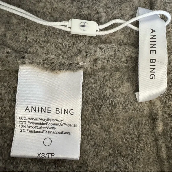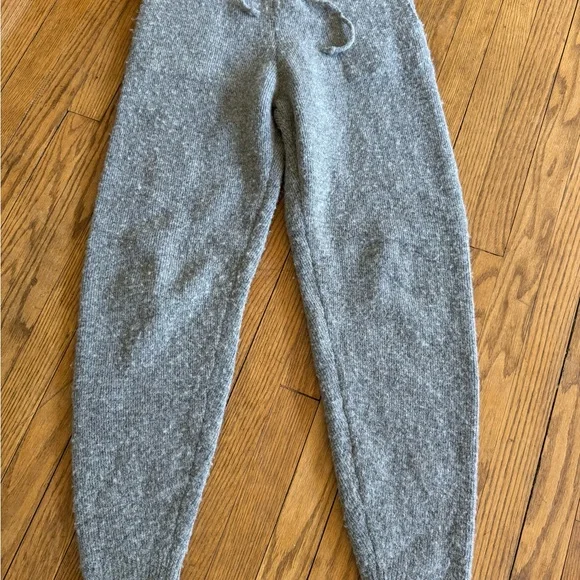 Anine Bing wool blend joggers.Elastic drawstring waist measures 14”, lots of stretch.Wool blend, inseam measures 32”.Side pockets, cozy. Pilling throughout.