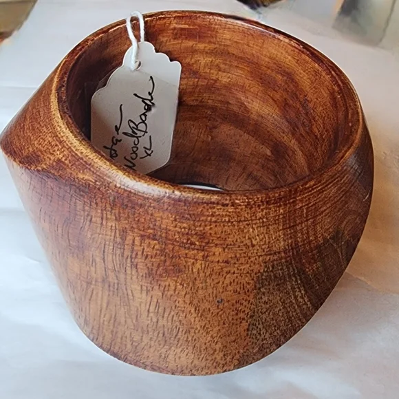 Stunning 80´s Vintage Massive Monies Gerda Lynggaard Teak Wooden Cuff Bangle Brown. Gorgeous.Great statement piece.Measures 3.5"H x 5"WBeautiful! Not heavy but solid.Normal used vintage wear.No damage. A piece of forever. Please note the pictures of the Bangle for sale are 1, 2, 3, 5, 8, and 10. All other pictures are to showcase various angles,color variations,etc.However,the buyer of this post will r´cv the item pictured in 1, 2, 3, 5, 8, 10. please don´t hesitate to ask for additional pics.BB07