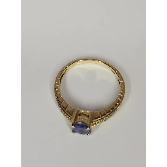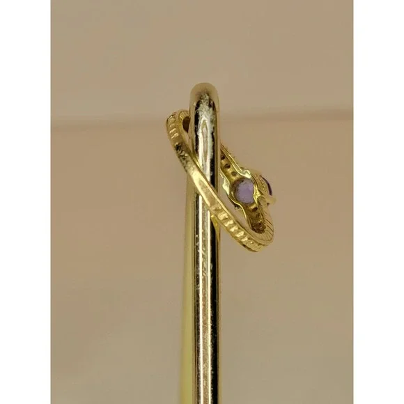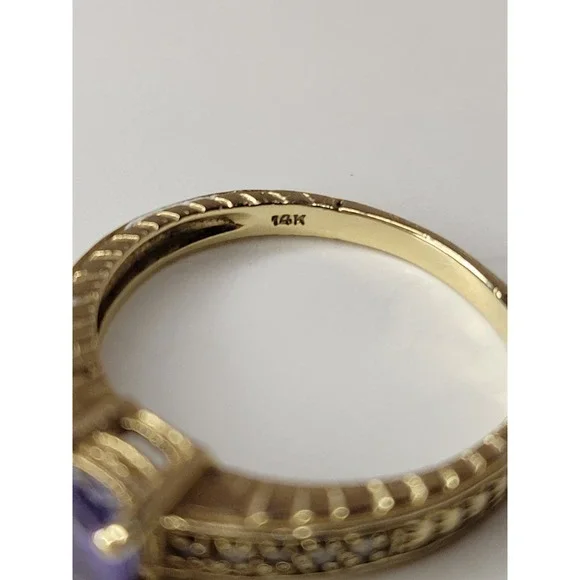 In excellent condition 14 kt yellow gold amethyst ( looks like it- can´t remember if it is) ring with very tiny diamonds on each side. Size: 6 3/4" (US)Stone Shape: Round- roughly 1/4" in diameterIf you have any questions or need an extra picture or two, feel free to reach out. We´re happy to help!Thanks for looking!We actually ship out same or next business day!!
