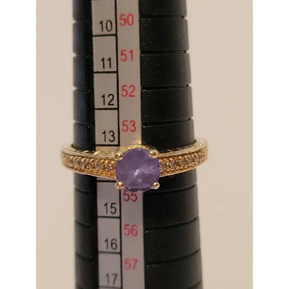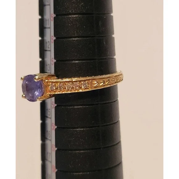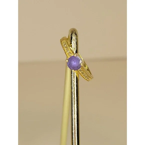 Gorgeous 14 Karat Yellow Gold Round Amethyst Tiny Diamond Ring Size 6 3/4"